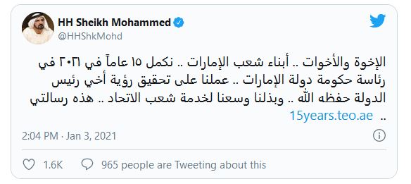 His Highness tribal sheikh Muhammad bin Rashid Al Maktoum, the Vice-President and Prime Minister of the UAE and Ruler of Dubai has completed fifteen years because of the head of the UAE Government.