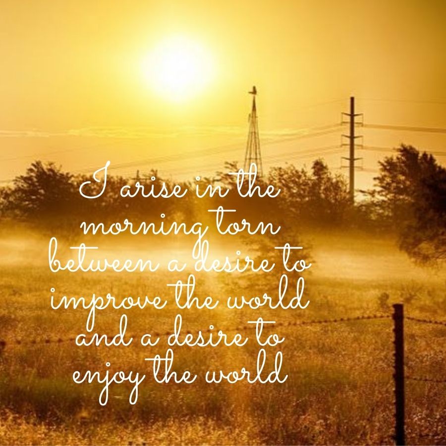 - “I arise within the morning torn between a want to boost the planet and a want to relish the planet.”
