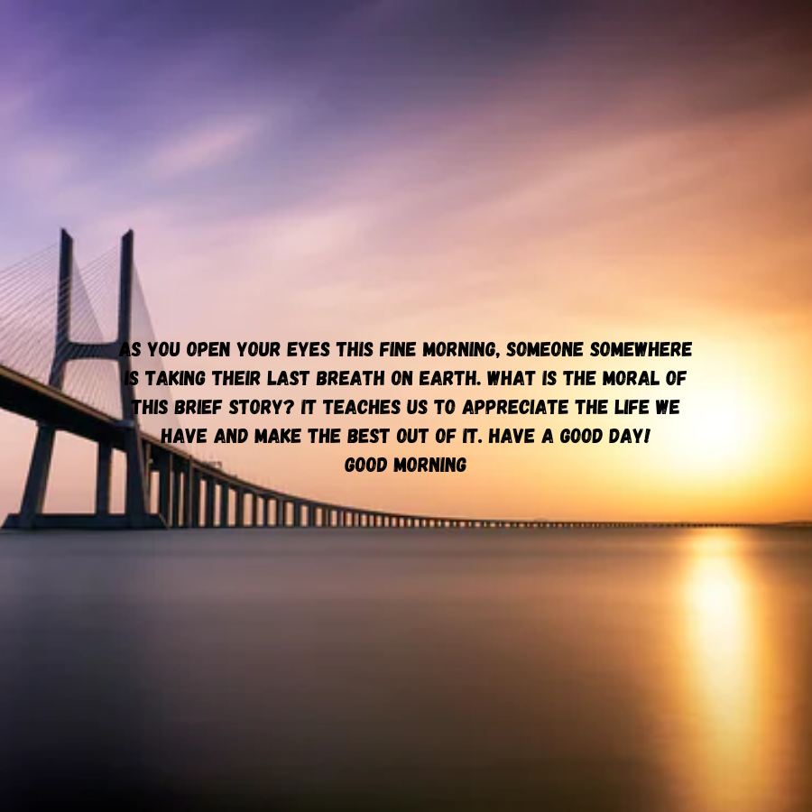“As you open your eyes this fine morning, somebody somewhere is taking their last breath on earth. what’s the ethical of this transient story? It teaches America to understand the life we’ve got and create the simplest out of it. Have a decent day!”