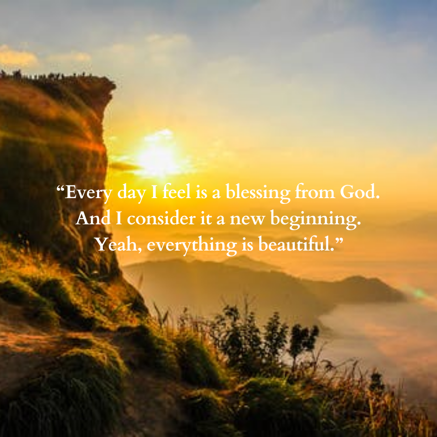 - “Every day I feel may be a blessing from God and that I contemplate it a replacement starting yea everything is beautiful”