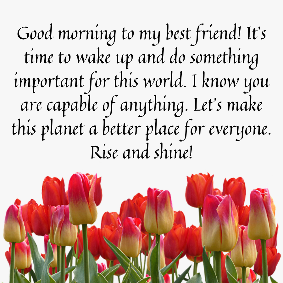 “Good morning to my relief Its time to get up and do one thing necessary for this world I do know you’re capable of something Lets create this planet a much better place for everybody Rise and shine”