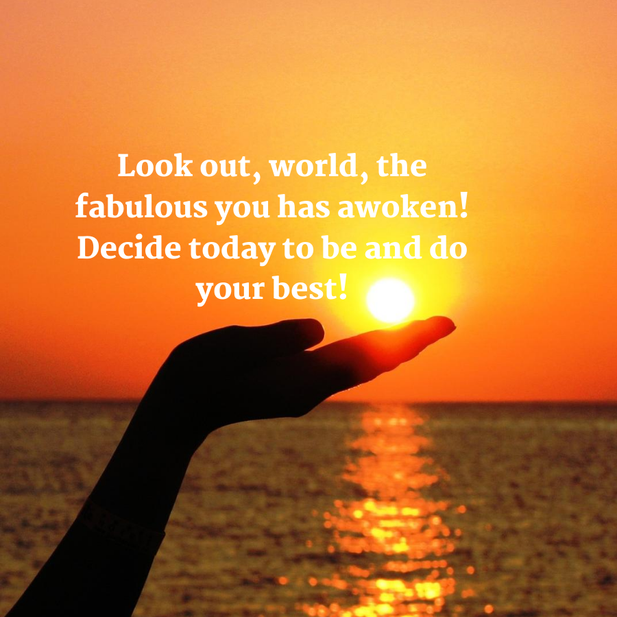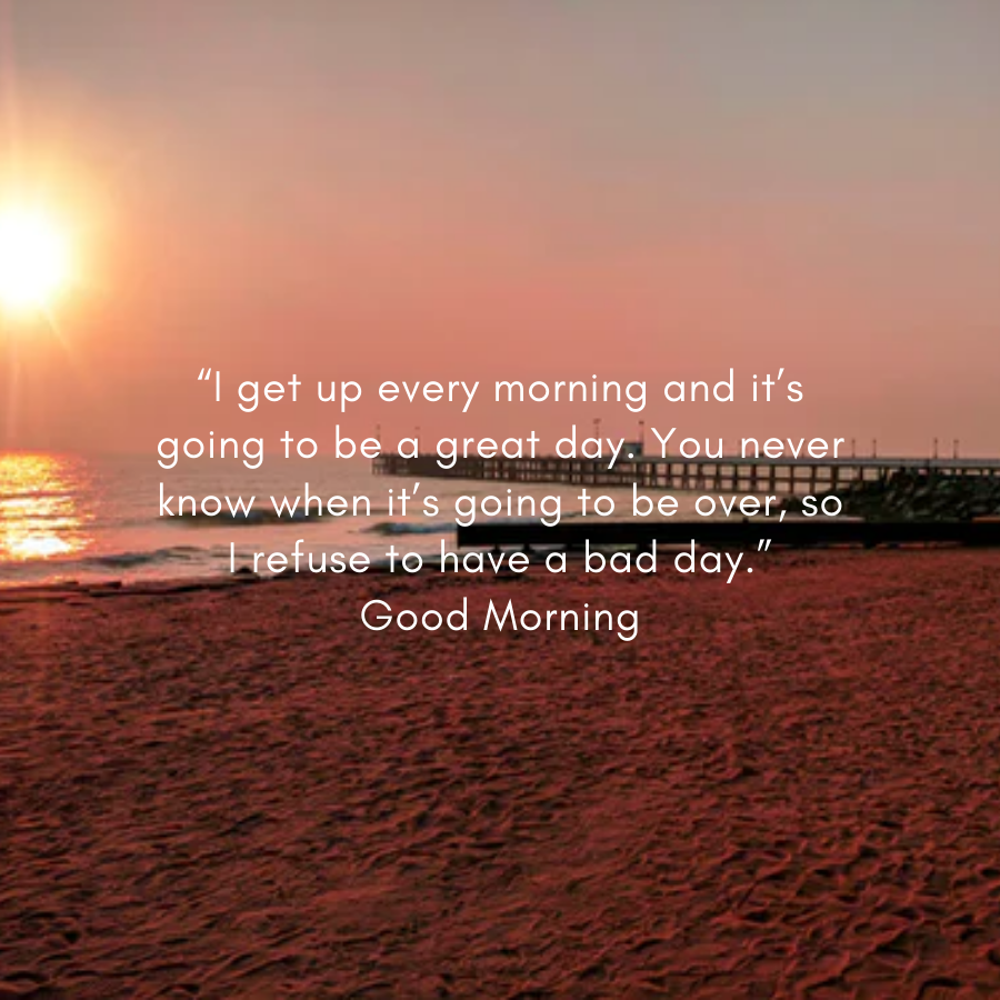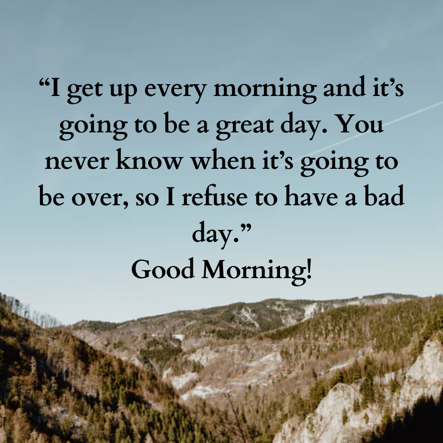 “I get on my feet each morning and it’s about to be an excellent day. You ne’er recognize once it’s about to be over, therefore I refuse to own a foul day.” sensible Morning!
