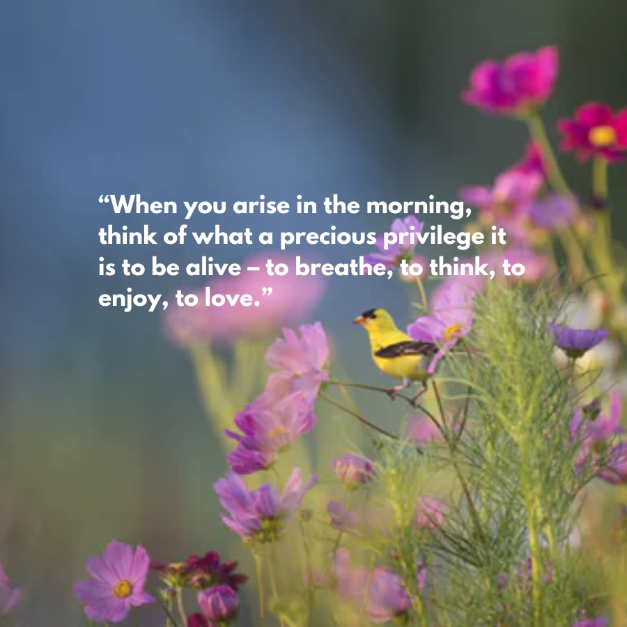 - “When you arise within the morning, consider what a precious privilege it’s to be alive – to breathe, to think, to enjoy, to love.”